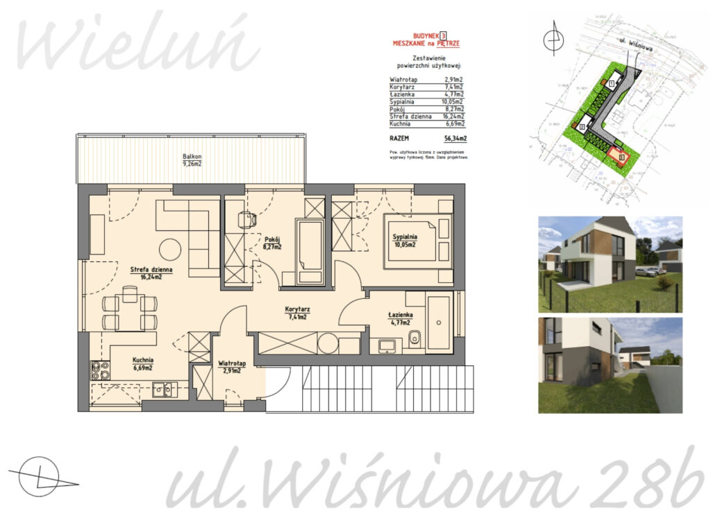 Najnowsza inwestycja to 6 lokali mieszkalnych w trzech budynkach (tylko dwa mieszkania w budynku) zlokalizowana na ul. Wiśniowej w Wieluniu (osiedle za szpitalem) – okolica bliska centrum i świetnie skomunikowana ale jednocześnie